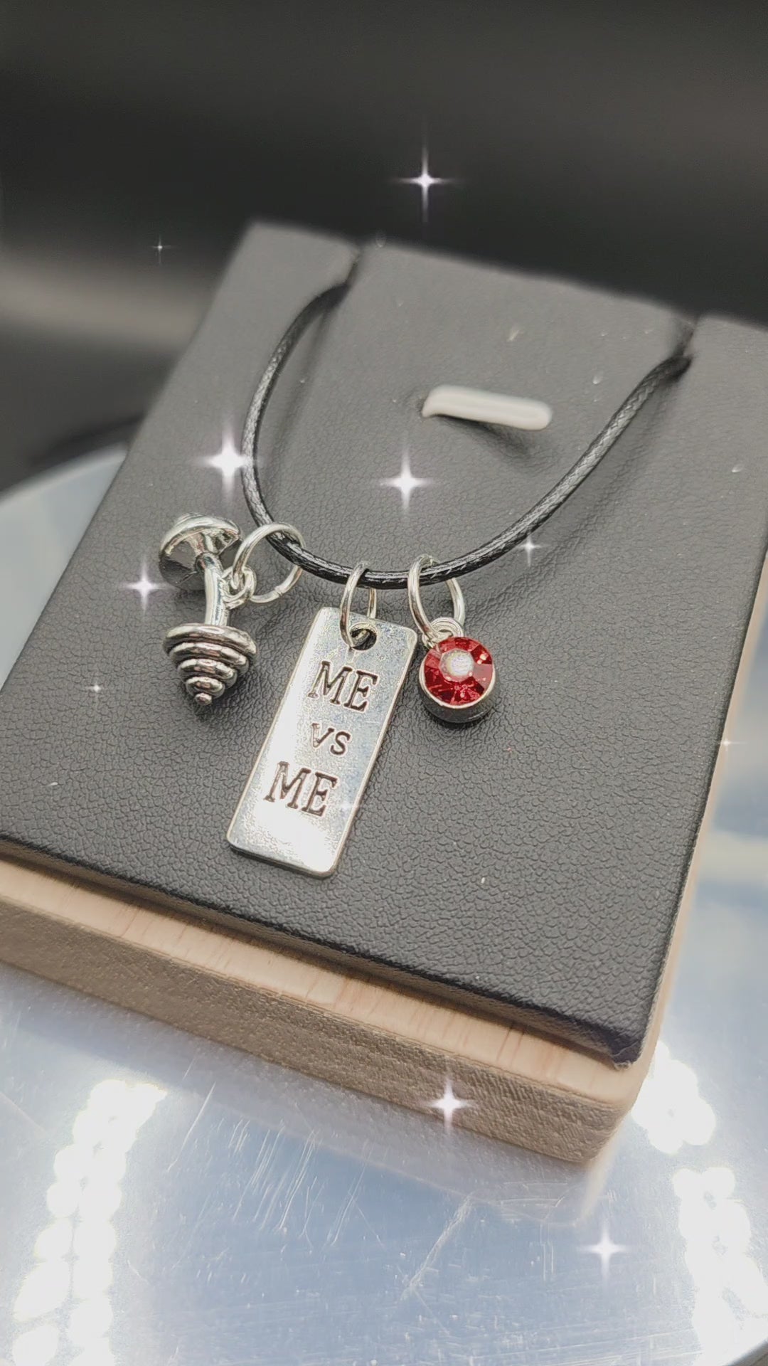 Customize your necklace with the quote that speaks to you and the rhinestone color that represents you best. Each necklace comes on an 18 inch black wax cord with a 2 inch adjustable chain.